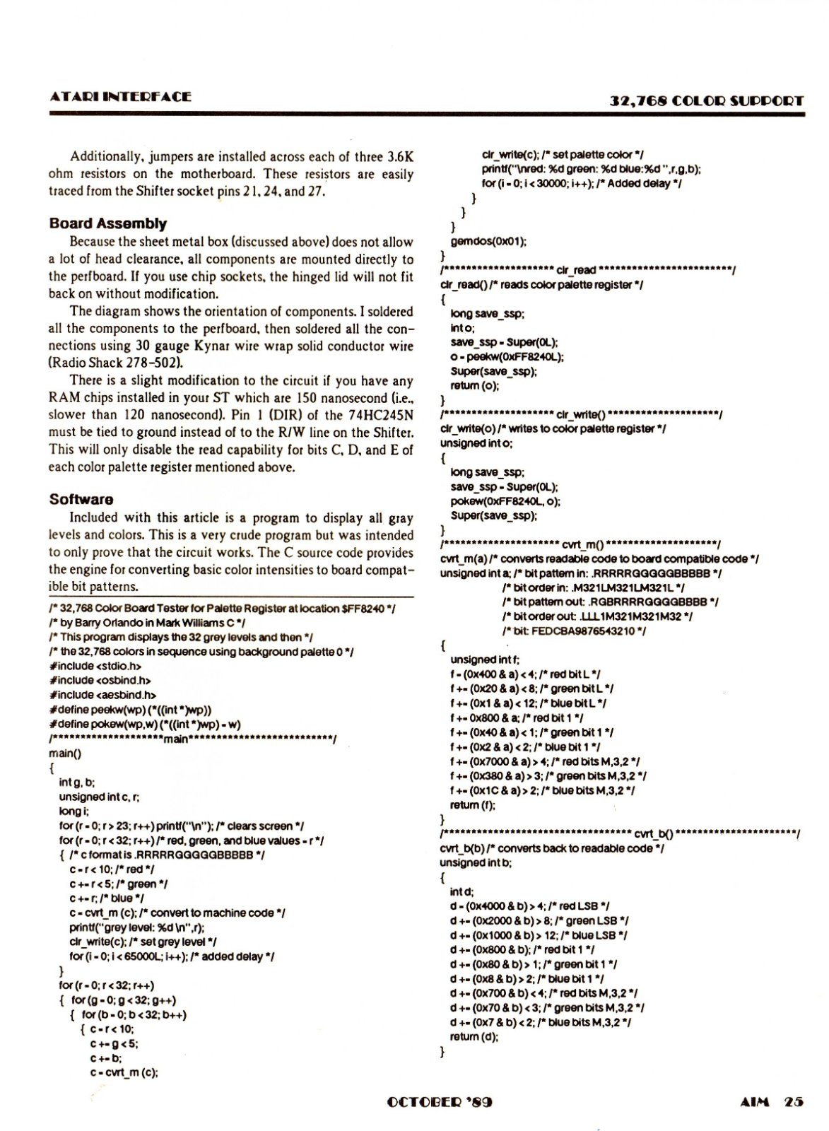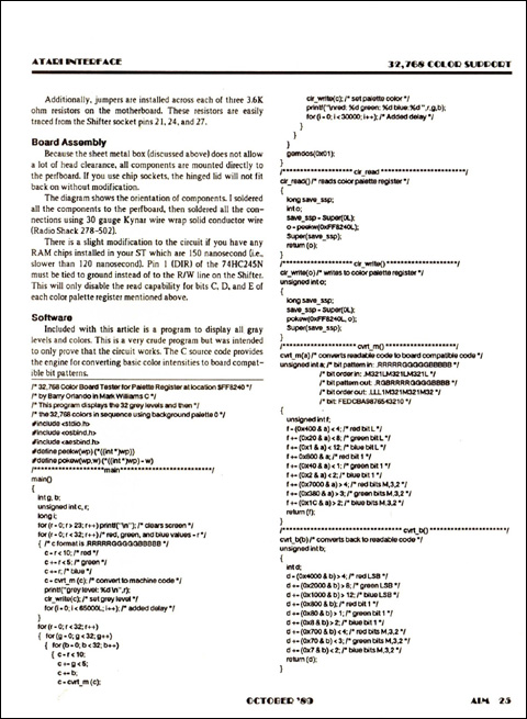 Dla celów archiwalnych zamieszczam trzy strony magazynu Atari Interface oraz plik 32kcolor.zip. 32kcolor.zip
