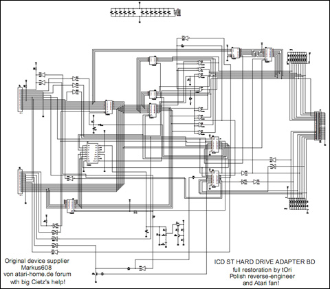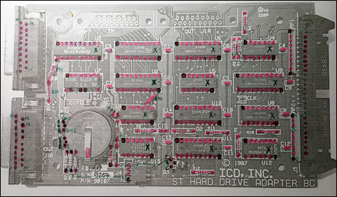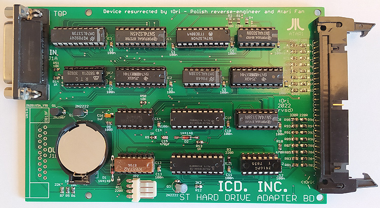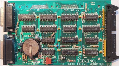 to adapter ACSI<->SCSI produkcji amerykańskiej firmy ICD Inc. która - jak wiele - już nie istnieje. Zastosowane przez producenta układy GAL16V8 zostały zabezpieczone