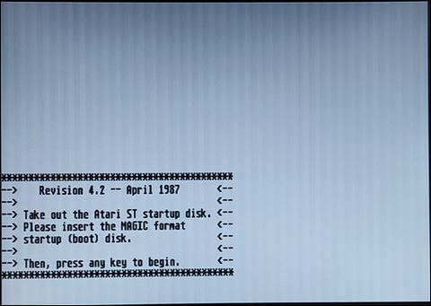 urządzenie w celu sprawdzenia jego działania. Poniżej zrzut ekranu startowego oprogramowania MagicSAC+ dla Atari: Po uruchomieniu emulatora przyciskiem MAGIC ukazał mi się taki obraz: Jako, żę w chwili obecniej nie posiadam dysku systemowego (boot) w formacie
