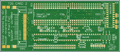 Hard&Soft GmbH TOS Card 2 restoration project UWAGA! Poprzednia wersja plików GERBER ma przerwę w ścieżce koło nogi 9 układu