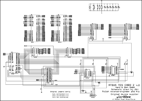 Pliki GERBER mojej wersji TOScard2 Instrukcja montażu (jęz. niemiecki - skan) Ten projekt, jak wszystkie, miał za cel przede wszystkim odrestaurowanie starego urządzenia dla Atari ST oraz jego schematu i firmware, co się udało. Dodałem także