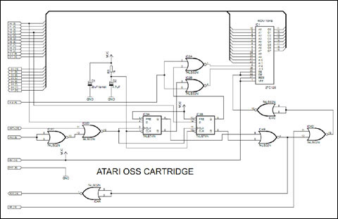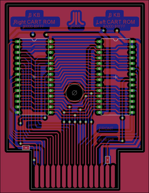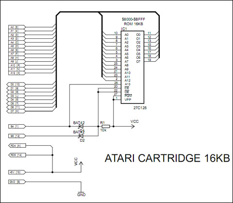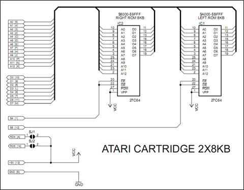 Standardowy Cartridge Atari 16KB (2 x 8KB)Schemat: Solder jumpery służą do określenia, który ROM ma być wybierany. SJ1 ROM prawy,