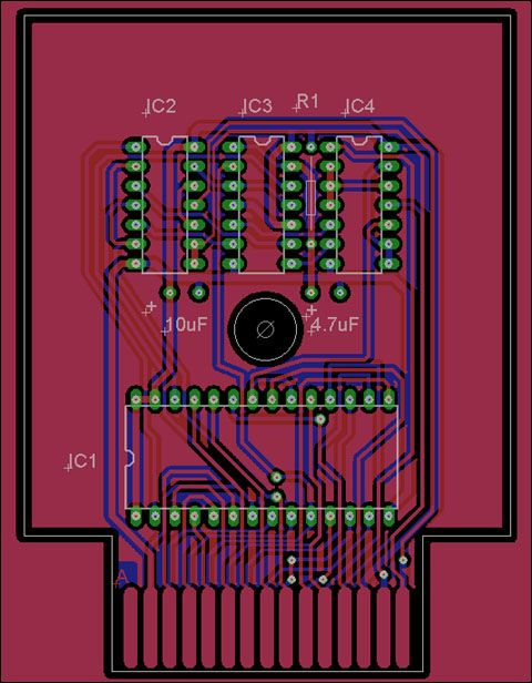 Gotowa PCB Cartridge 16K (jest to wersja bez solder jumperów):