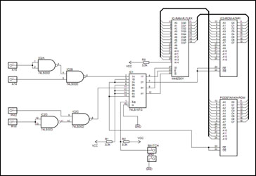 jest mapowana pamięć R-Flexa. Bramki IC2C oraz IC2D formują sygnał zapisu do RAM. Multiplexer IC1 ma za zadanie zmieniać tryby pracy (oryginalny OS <-> R-Flex).