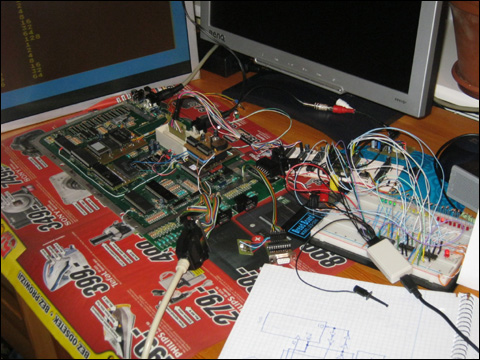 w celach testowych. Do odgrywania użyłem SID Playera napisanego przez Świętego... Poniżej kilka zdjęć: Zestaw testowy do sprawdzenia działania obwodów wejściowych - na zdjęciu moja płyta