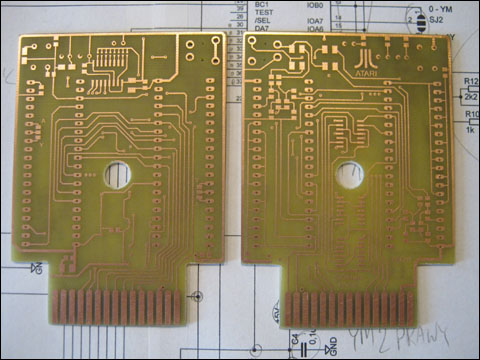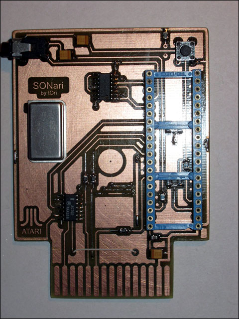 Całość zmieściła się na stosowanym przeze mnie PCB w formacie Cartridge. Na schemacie można wydzielić w zasadzie trzy części: układy sterujące, generatory oraz układy wyjściowe. Taktowanie generatorów odbywa się bezpośrednio z Atari