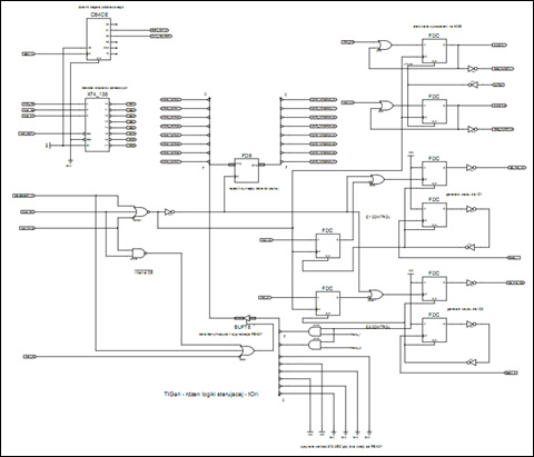 Jak widać na schemacie logiki sterującej - mamy wewnątrz CPLD opisane części składające się na to, aby całość działała zgodnie z wymaganiami TI zawartymi w