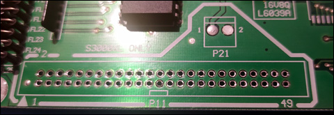 dokładnie oczyścić zalane cyną otwory lutownicze a następnie, po prostu, wlutować pinheader 2x25 i to wszystko. Powyżej znajduje się dwupinowe złącze zasilające P21,