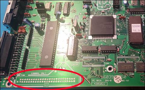 wyczyścić wszystkie otwory lutownicze i w to miejsce wlutować podstawkę DIP32 pod nową pamięć 27C040. Następnie wylutować zworkę oznaczoną S2000 obok podstawki