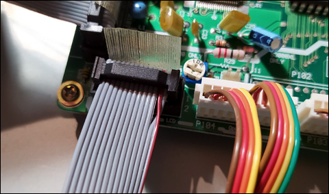 Należy wylutować z PCB LCD taśmę łączącą (IDC header 14P) i po oczyszczeniu wlutować tak samo w płytkę zamiennika. Zasilania podświetlenia nie wlutowuje się, bo
