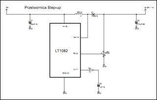 Zamieszczam tutaj schemat bardzo przydatnego dla mnie układu scalonej przetwornicy napięcia LT1082, która do pracy wymaga naprawdę niewielu elementów. Jest to układ podwyższający napięcie, który