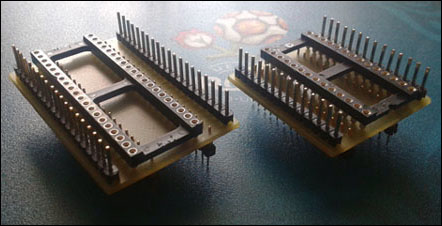 Troszkę przydatnych narzędzi, czyli przelotki układów DIP28 i DIP40. Można zadać pytanie - po co? Przede wszystkim aby mieć jak najłatwiejszy dostęp do sygnałów szyn Atari. Łatwiej