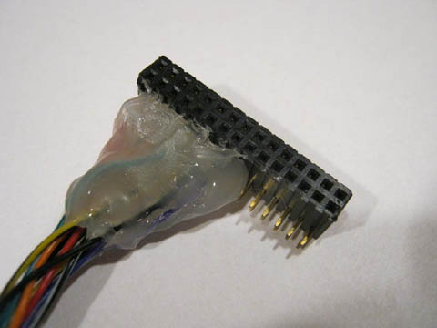 i gniazda goldpin przy pomocy kleju na gorąco. Takie wzmocnienie jest niezbędne po to aby połączenia się nie poodrywały w trakcie montażu i eksperymentów. Gniazdo goldpin