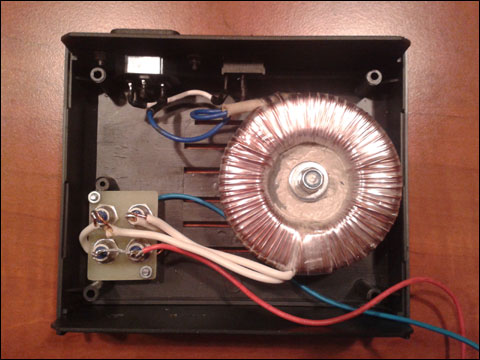 musiałem zrobić był zasilacz 12V prądu tętniącego dlatego, że elementem sterującym obrotami jest tyrystor. Sprawa jest prosta: bierzemy transformator toroidalny 12V, taki
