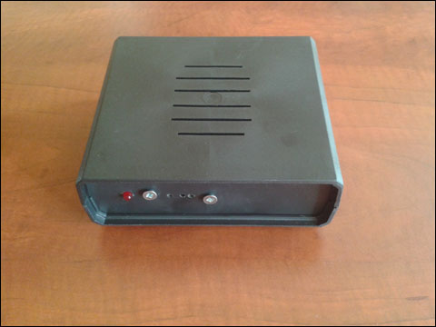 Widok całości w nowym kształcie. Po prawej stronie widoczny jest zasilacz. Próby