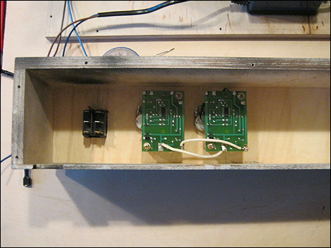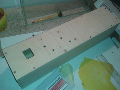 Zdjęcie przedstawia pudełko wykonane ze sklejki, w którym zostanie zainstalowana