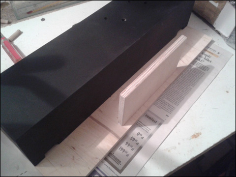 Pudełko elektroniki wyszpachlowane, przeszlifowane i pomalowane na czarno