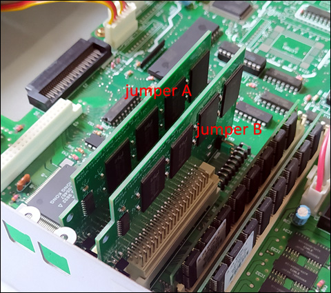 Jak widać na zdjęciu - moduły są oznaczone jako A i B, i tak należy ustawić zworki na PCB. Błędne ustawienie powoduje wyświetlenie na ekranie komunikatu błędu.
