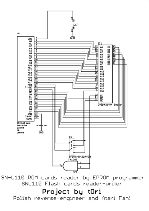 a programator wystawia poziom niski :) Taka sytuacja... Odczyt karty jest bezproblemowy i potem wystarczy zapisać plik binarny, który przyda się do uruchomienia klona. Karty - oryginalna i klon Schemat klona karty SN-U110 Jest to także bardzo prosty układ. I tutaj także została zastosowana pojedyncza