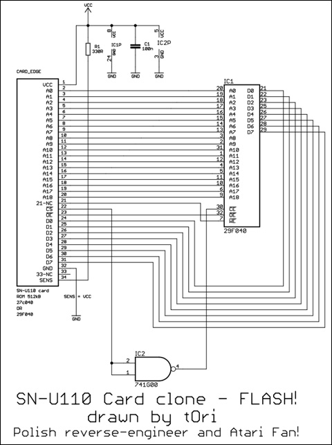 Została również zastosowana pojedyncza bramka NAND w konfiguracji inwertera na linii CS, ponieważ oryginalna karta jest sterowana poziomem wysokim tego sygnału,